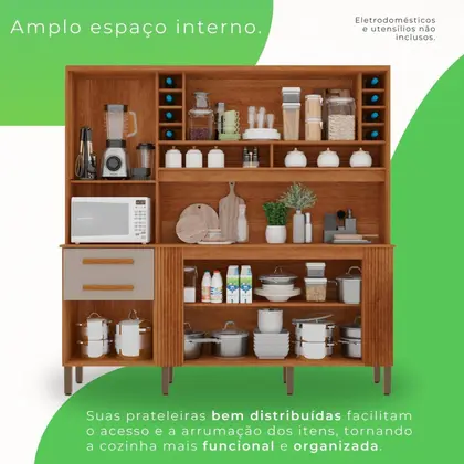 Amplo espaço interno e divisórias planejadas para melhor organização dos utensílios domésticos.
