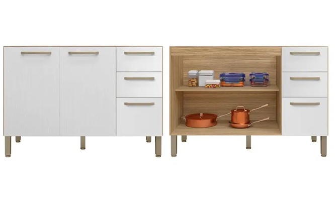 Este armário é perfeito para organizar ultensílios, mantimentos e eletrodomésticos de forma funcional e moderna.