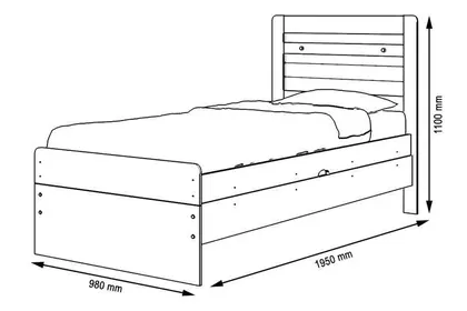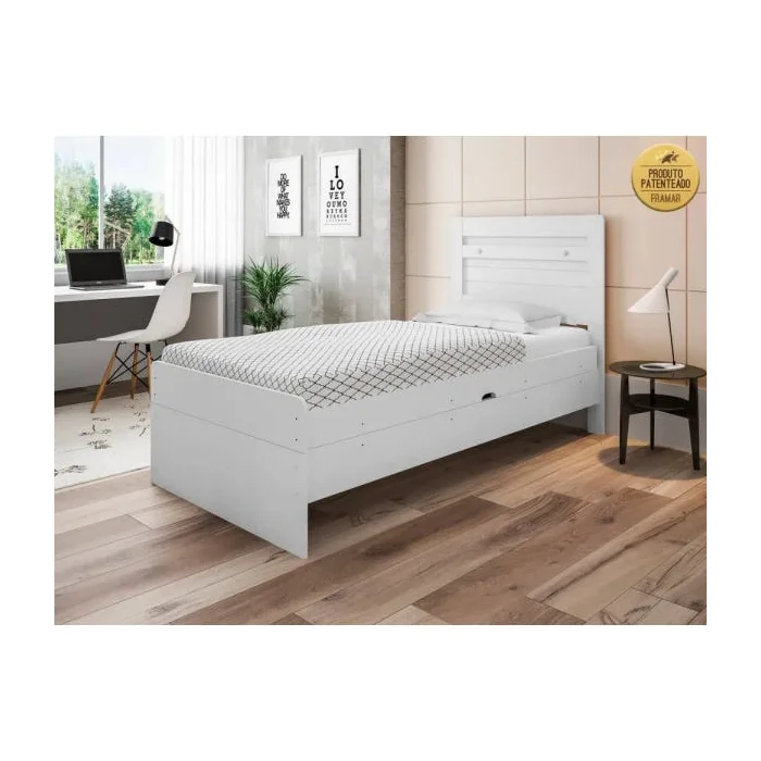 – Possui baú embaixo do estrado. Dimensões: Alt: 22 cm, Larg: 53 cm, Prof: 190 cm