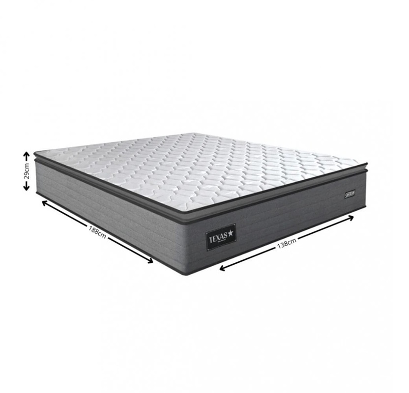 O Colchão Casal 138cm Mola Texas Gazin com molas ensacadas soft pillow, possui o revestimento superior é confeccionado em malha, um tecido mais poroso que favorece uma ventilação aprimorada, proporcionando conforto térmico e uma sensação macia ao toque. O revestimento superior também é elaborado em tecido plano, que não propicia o acúmulo de poeira e materiais orgânicos, sendo de fácil higienização. Este produto apresenta excelente custo-benefício. Os lados são revestidos com tecido suede linho, caracterizado por sua elevada resistência, durabilidade e beleza.