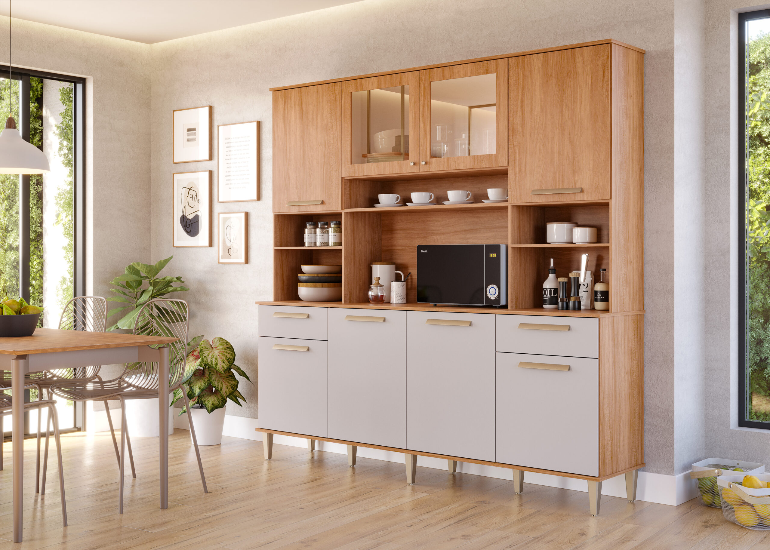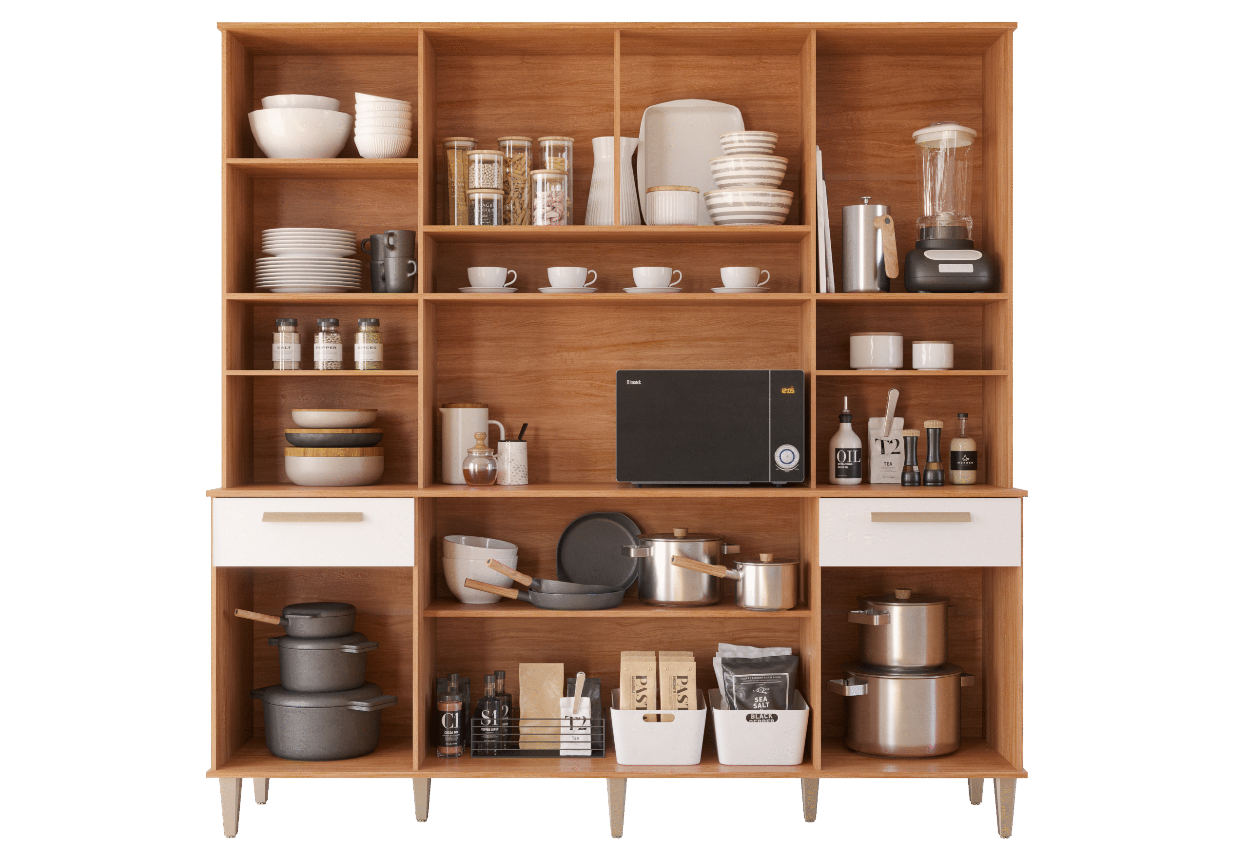 – Gavetas com corrediças telescópicas e puxadores em ABS na cor gold