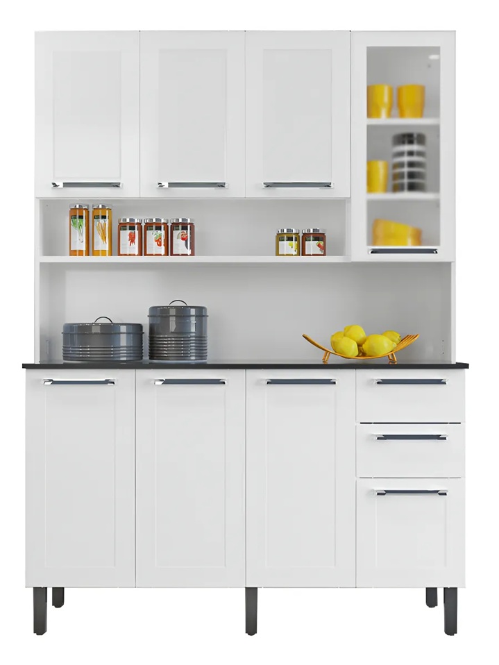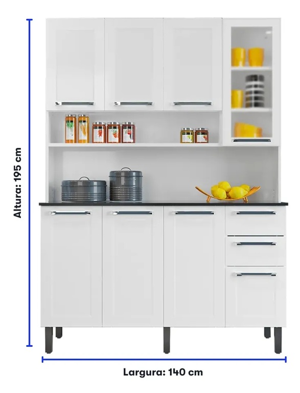 Transforme sua cozinha com estilo e praticidade usando o Kit Cozinha Itatiaia Florença 140cm. Com design moderno, acabamento em branco brilhante e excelente aproveitamento de espaço, este conjunto é ideal para quem busca funcionalidade sem abrir mão da elegância. São 8 portas e 2 gavetas bem distribuídas para organizar louças, mantimentos, utensílios e tudo o que você precisa à mão no dia a dia. Produzida em aço de alta qualidade com pintura eletrostática, a Cozinha Florença é resistente, durável e fácil de limpar — perfeita para a rotina da sua casa. Seu tamanho compacto de 140cm de largura se encaixa perfeitamente em ambientes pequenos e médios, trazendo leveza e sofisticação ao ambiente. Destaques do Produto: 8 Portas + 2 Gavetas: organização prática e funcional; Acabamento Branco Brilhante: visual limpo e moderno; Estrutura em Aço com Pintura Eletrostática: mais durabilidade e proteção; Design Compacto (140cm): ideal para cozinhas com pouco espaço; Puxadores resistentes e dobradiças metálicas; Produto 100% Nacional – Marca Itatiaia: sinônimo de qualidade; Dimensões Aproximadas: Largura: 140 cm Altura Total: Varia conforme montagem (armário + balcão) Profundidade: média de 29 a 52 cm (módulos superiores/inferiores) Leve mais praticidade, beleza e organização para sua cozinha com a qualidade Itatiaia!