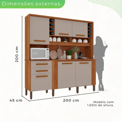 Armário de Cozinha Catar Cinamomo/Off 6 Portas 2 Gavetas Larg. 2.00m – Sallêto