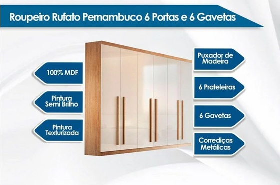 Guarda Roupa Casal 6 Portas e 6 Gavetas Pernambuco Naturale – Rufato
